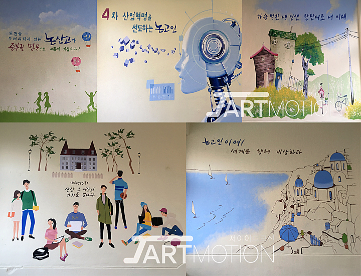 고등학교에 디자인 그래픽 벽화를 시공하여 미래지향적인 교육을