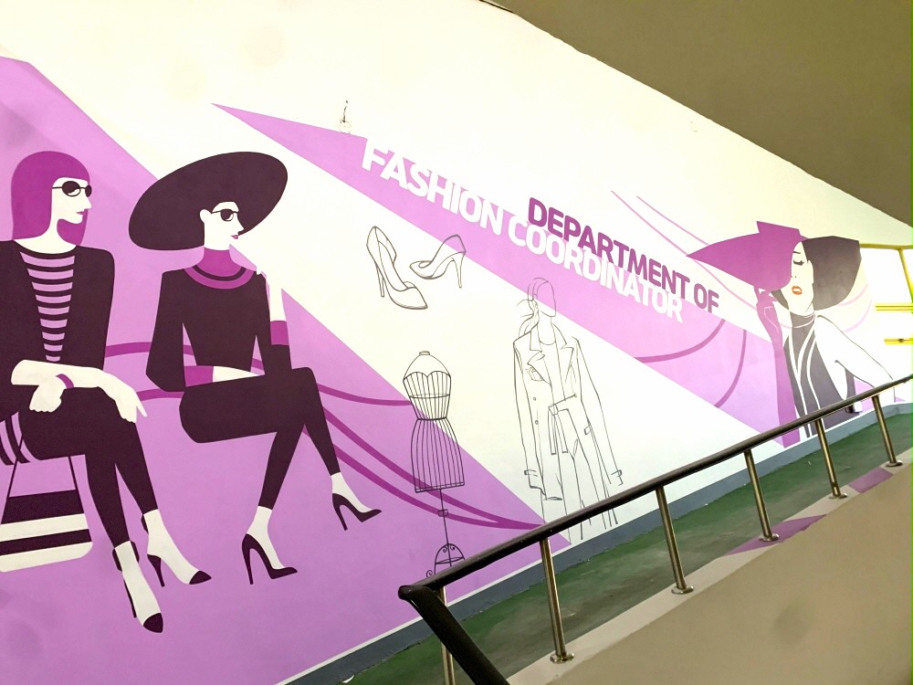 고등학교 디자인 벽화, 고등학교 실내에 층마다 학과 컨셉에 맞는 디자인 벽화를 시공하여