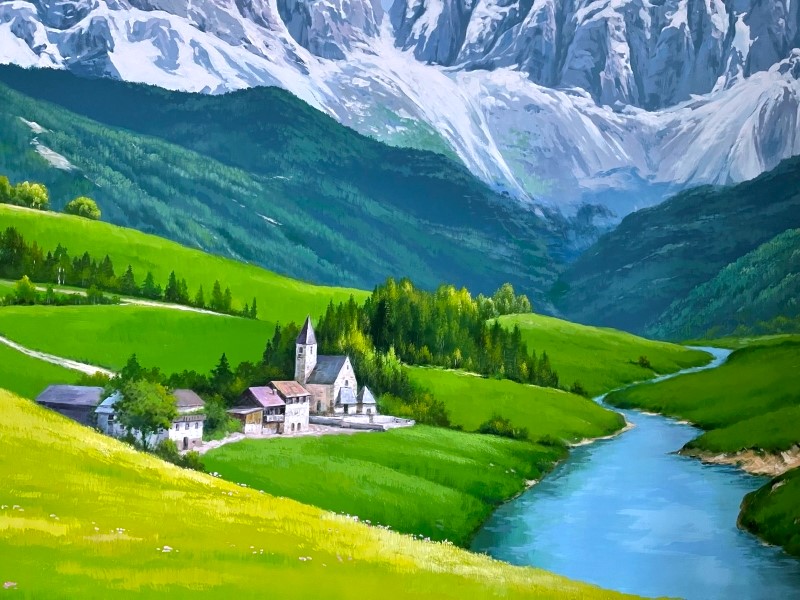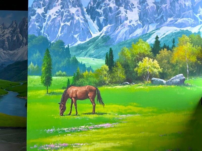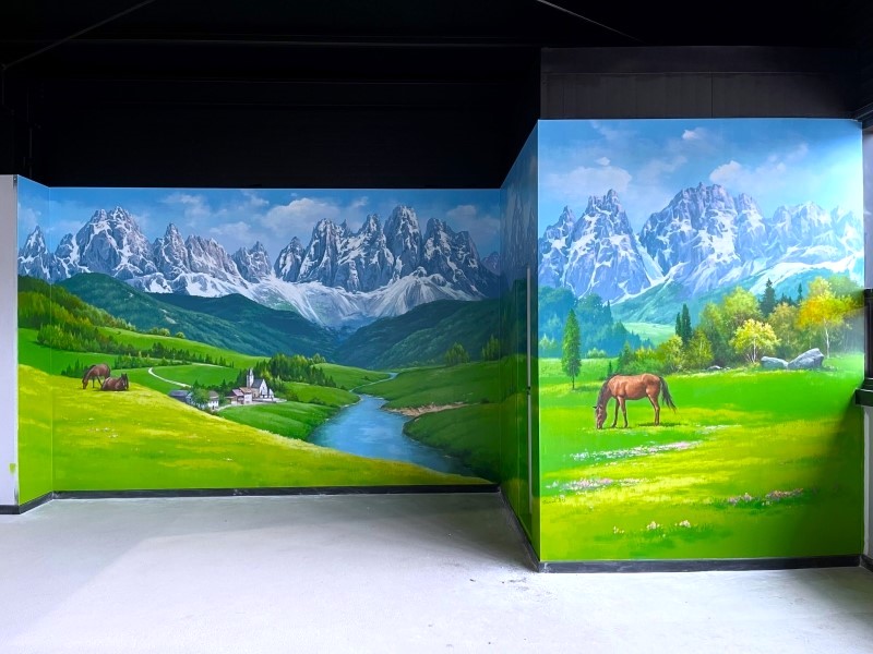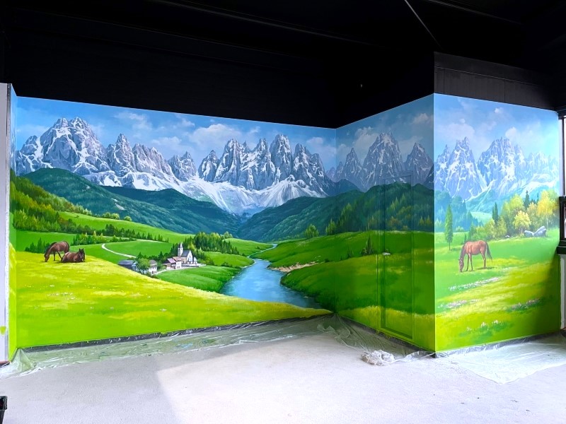 공장 사무실 실내 벽면에 자연 풍경 인테리어 벽화를