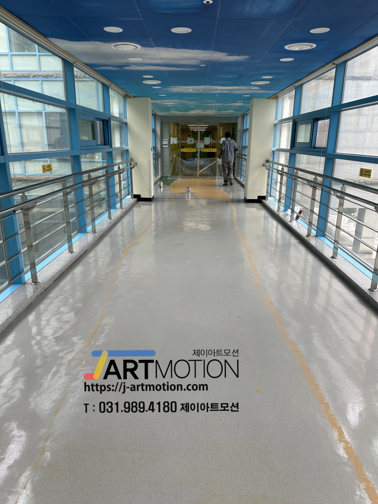 부천시립요양병원 복도 바닥에 꽃길만 가자는 의미로