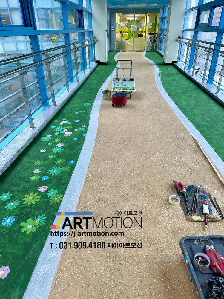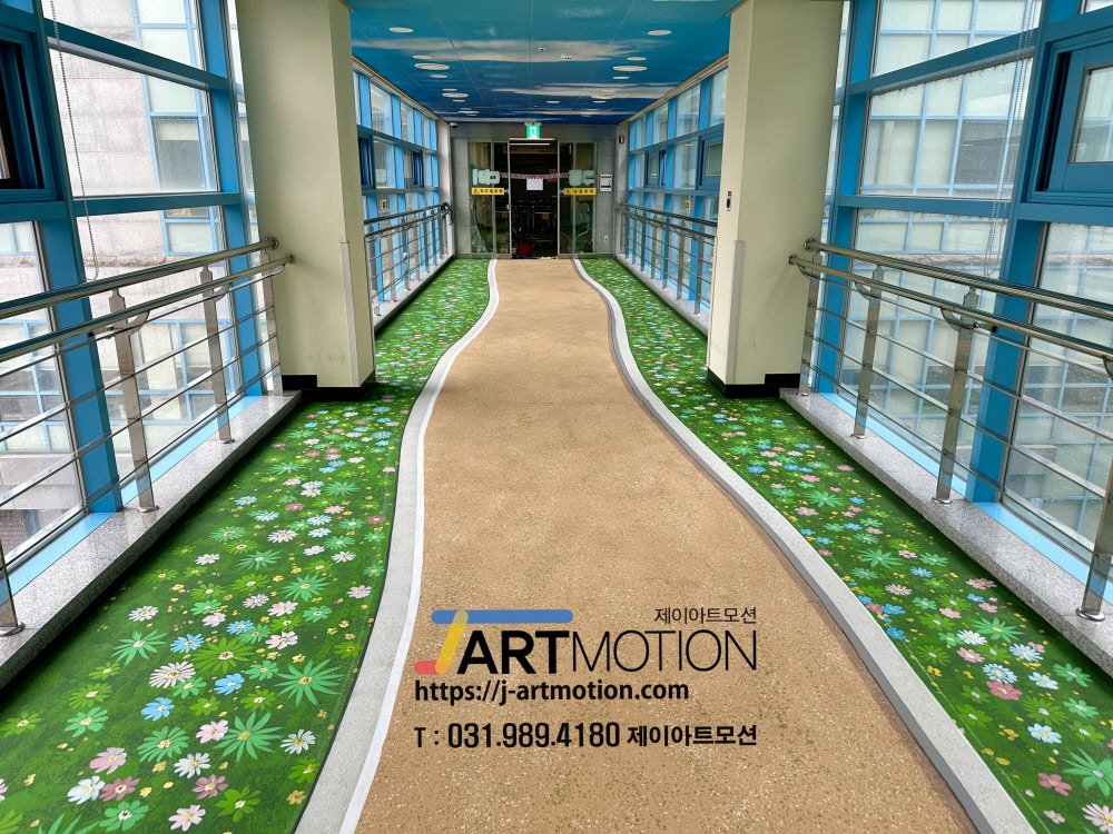 입체적인 아트방법으로 꽃길 벽화를 시공하여 공간의