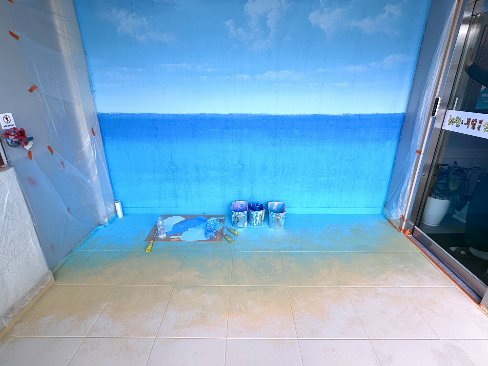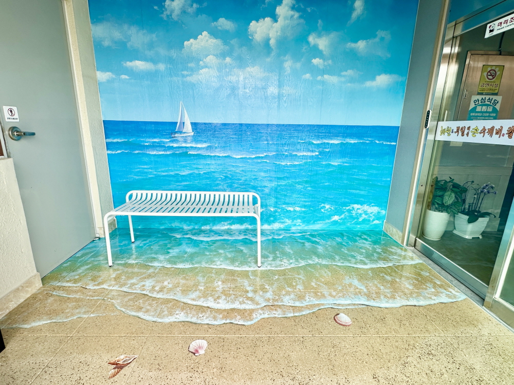 식당 해변 인테리어 바닥 트릭아트 포토존,