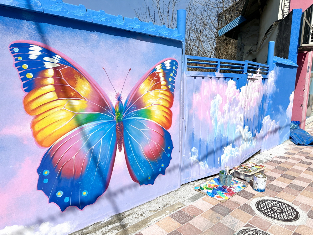 상주시 패션거리 나비 트릭아트 벽화 제작