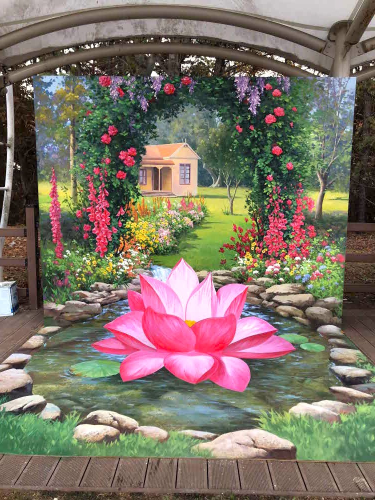 연꽃이 실제 물 위에 떠 있는 듯한 장면을 연출했습니다.