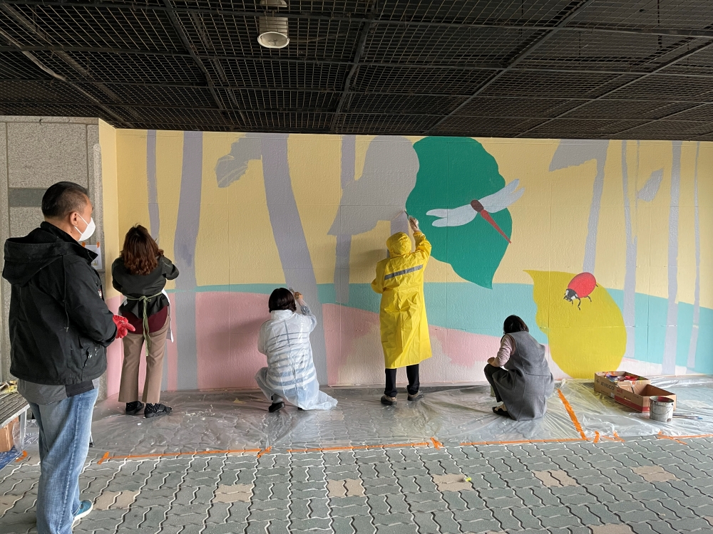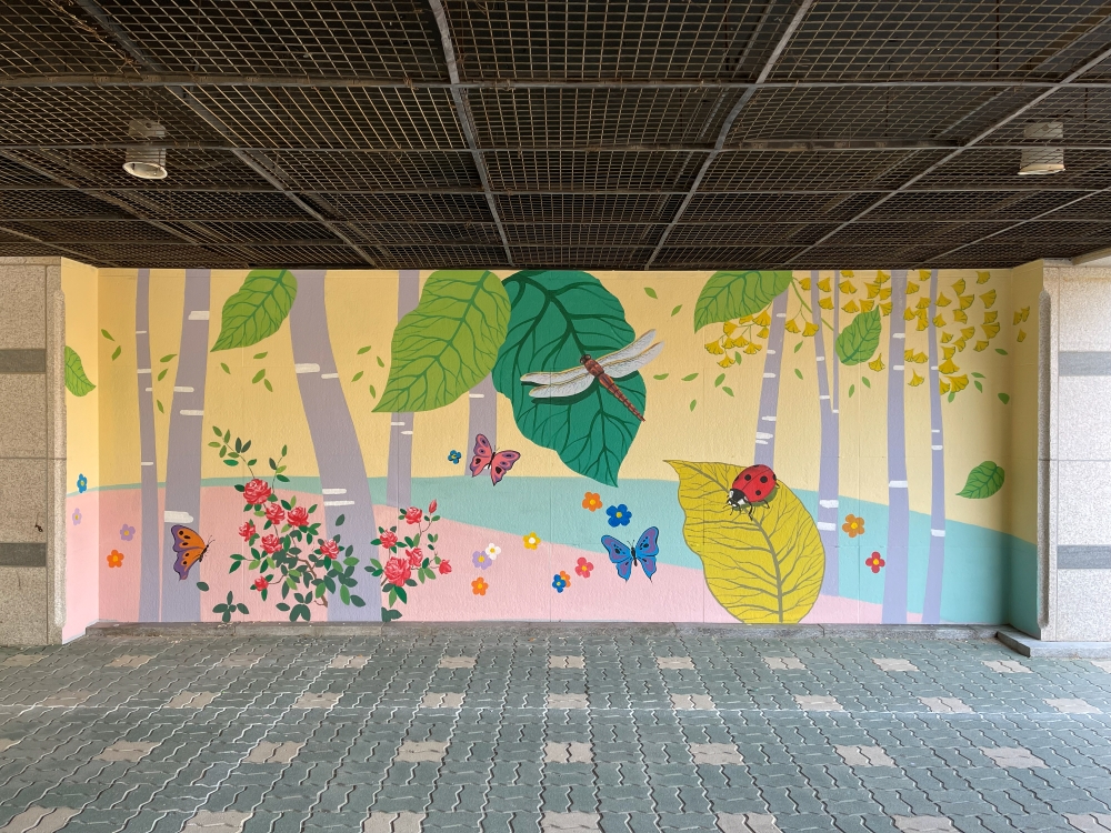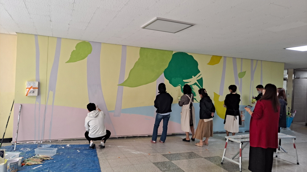 경기도 내 학교건물 벽면에 교내 학생들과 선생님들이“내손으로 학교 꾸미기” 벽화 프로젝트에 함께 참여하여명랑한 색채로 자연의 풍요로움을 그래픽 벽화로 제작