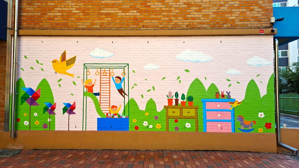 초등학교 놀이터 디자인 벽화시공, 경기도 내 여러 초등학교에 놀이터 벽화를 시공함으써