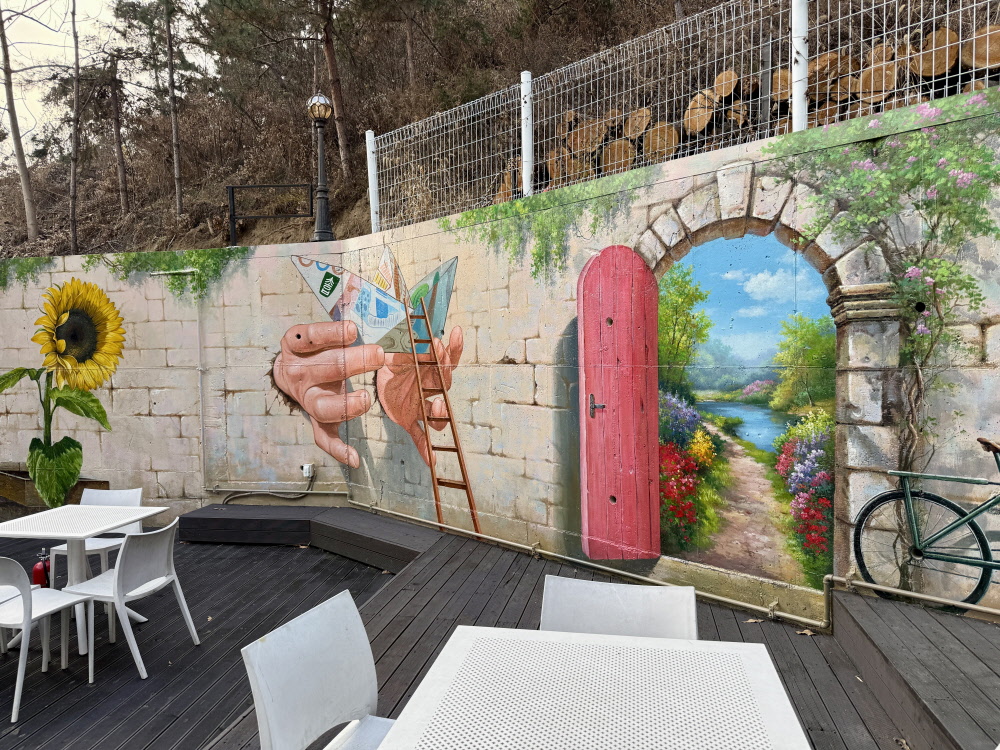 카페 인테리어 트릭아트 포토존 (해바라기, 자연풍경) 벽화