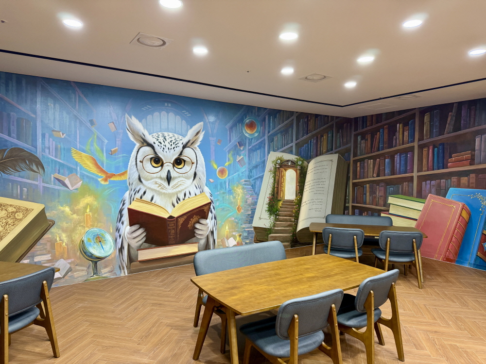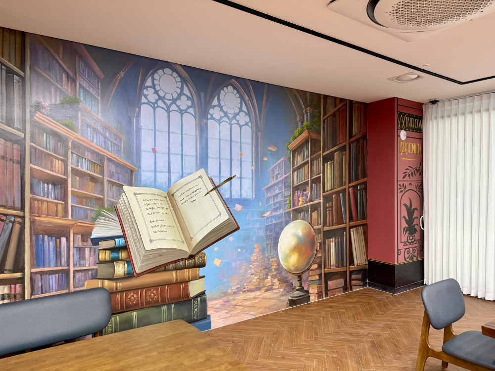 특색있는 도서관 트릭아트 벽화