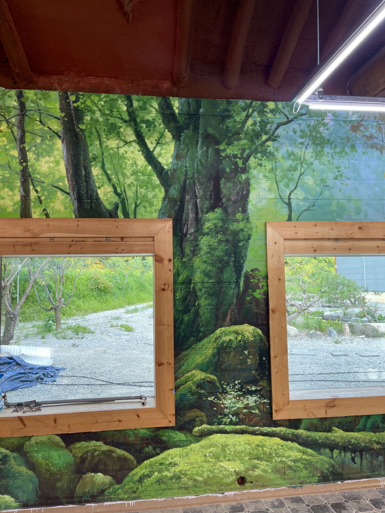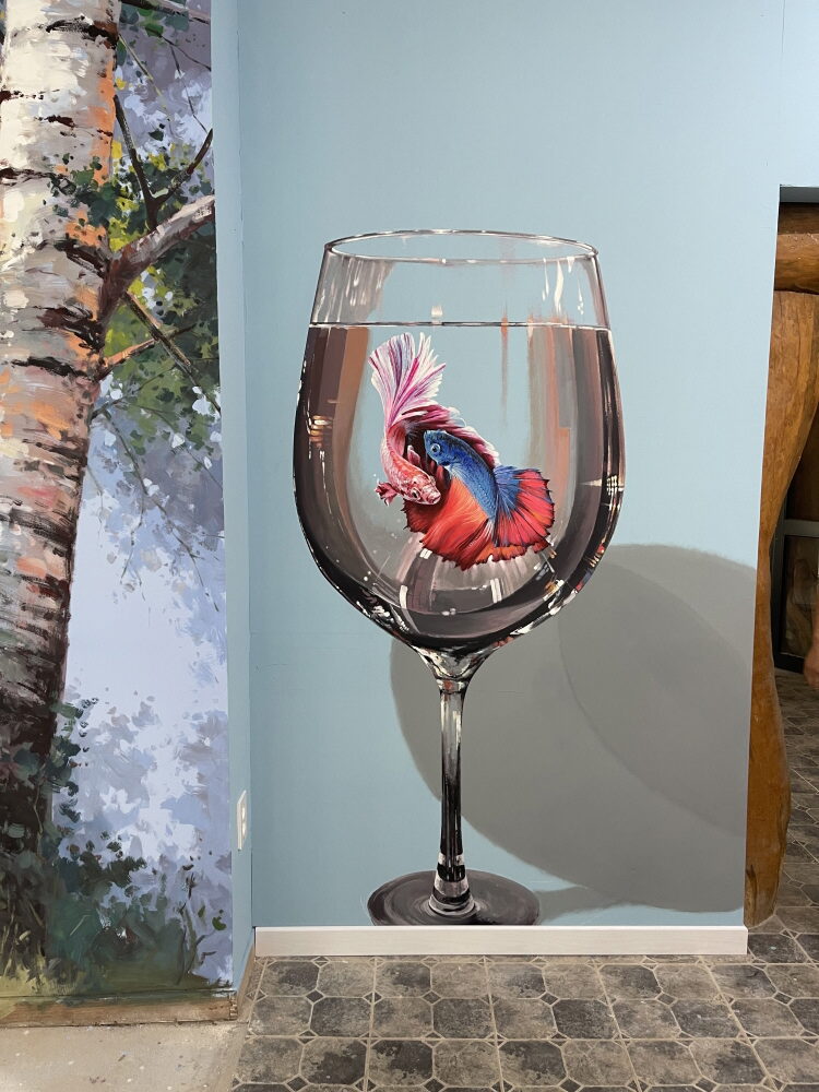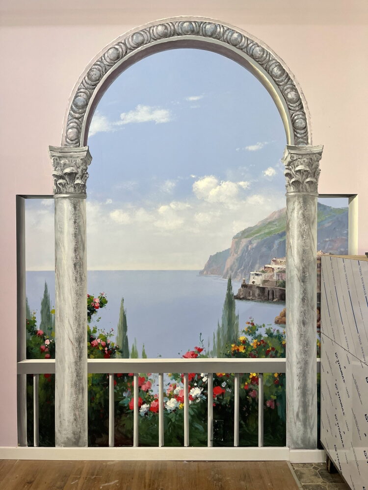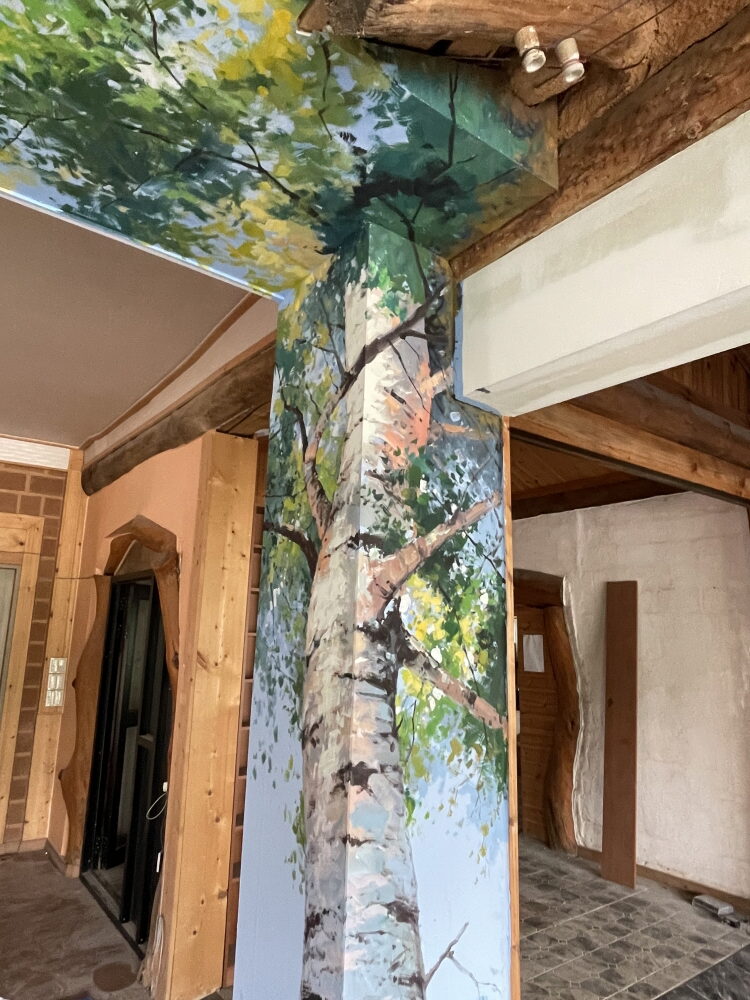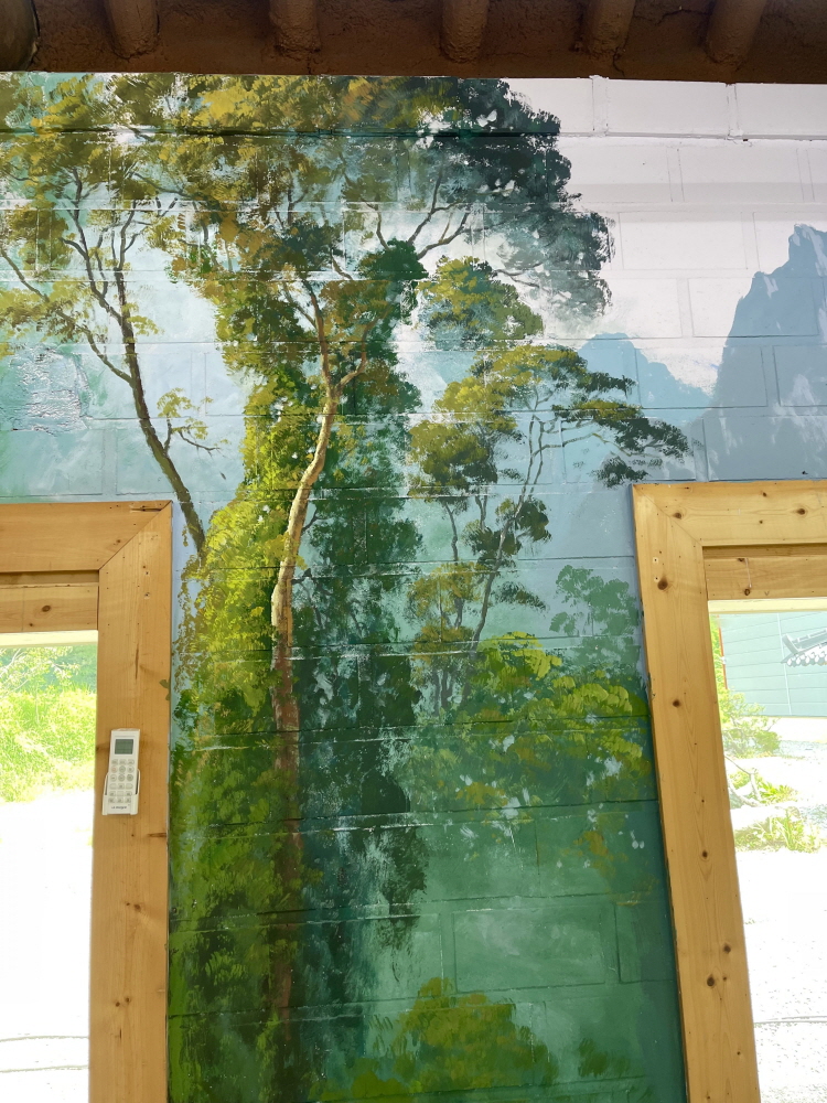 카페 건물 실내를 고급 마감재인 벽화 작품으로 인테리어함으로써