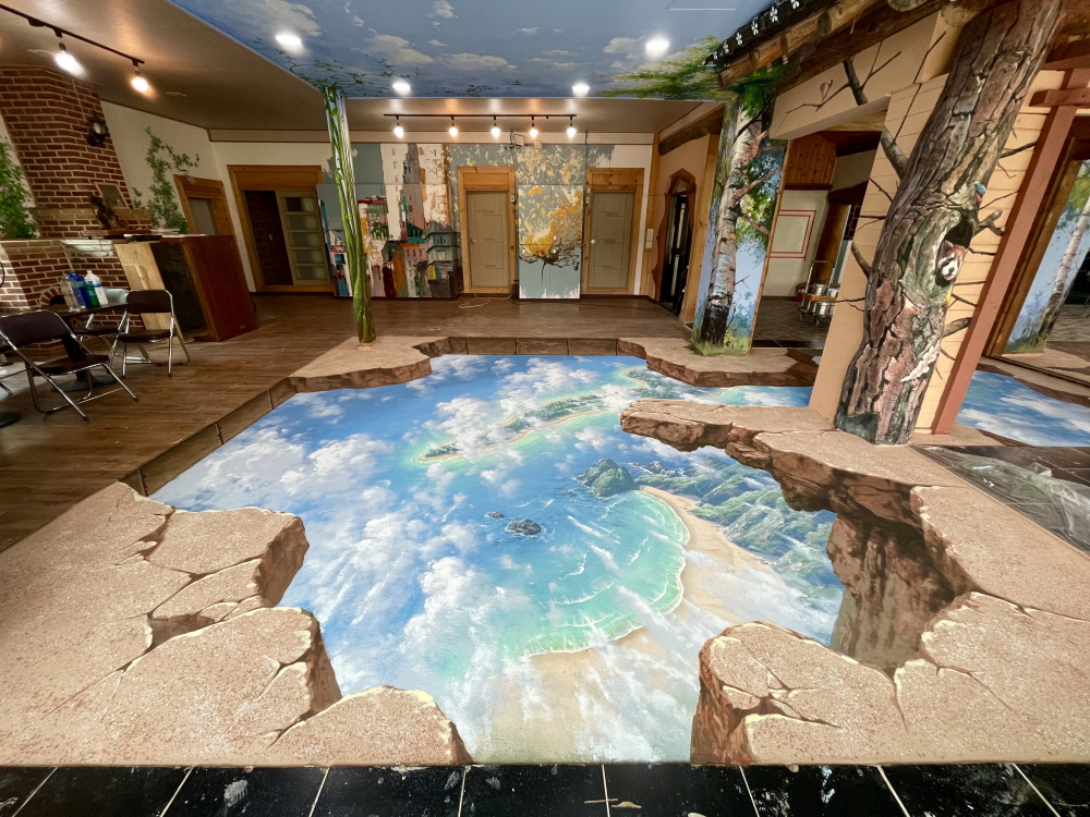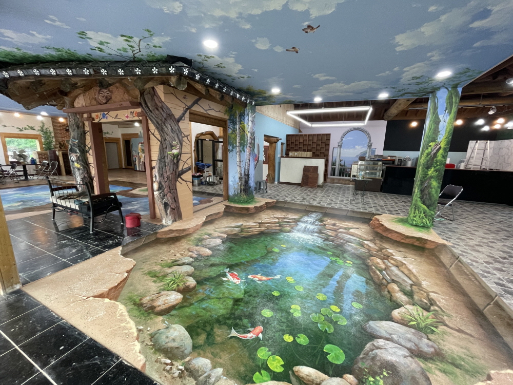 카페 실내 인테리어 트릭아트 벽화