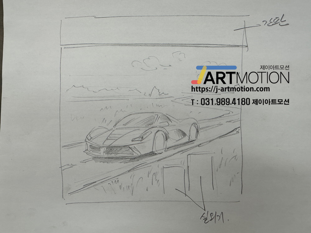 상가 건물에 사장님이 좋아하는 자동차 벽화를 고퀄리티로 제작해 드림.